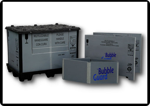 The standard “sleeve” made of Bubble Guard® board (together with proper pallets / bottom-trays and top lids) is a brilliant basic solution for this task: available in different weights to cope with users’ requirements.